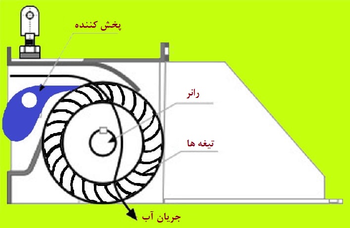 4. محفظه توربین: محفظه توربین جریان متقاطع از پاشش آب به قسمت بیرونی جلوگیری می کند.